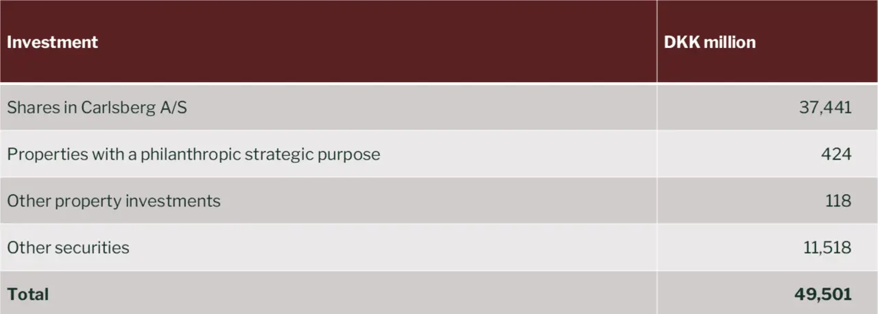The Carlsberg Foundation’s financial assets broke down as follows on 30 June 2025: