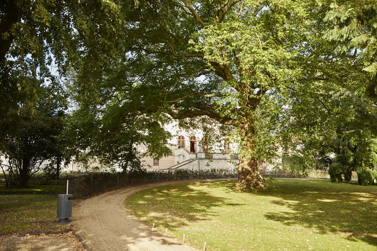 Alongside the garden restoration, noise shielding was established to the south and new access to the north. In the northern part of the garden, a stormwater basin has also been established to percolate water following cloudbursts, and the pathways and boundaries have been modernised.