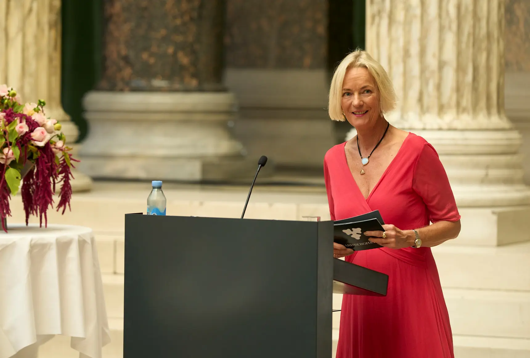 ”På vegne af Carlsbergfondets bestyrelse er det mig en stor glæde at kunne lykønske Anne-Marie Mai og Jens-Christian Svenning med Carlsbergfondets Forskningspris 2023. Hver især har de på fornemste vis sat deres præg på dansk forskning i en lang årrække. Anne-Marie Mai har ydet et toneangivende bidrag til litteraturforskningen og står blandt andet bag nyskabende analytiske tilgange, der eksempelvis har gjort det muligt at forbinde ledende forfatterskaber på nye måder.