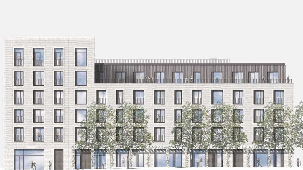 Tegning af forskerboligernes facade. Illustration: Praksis Arkitekter