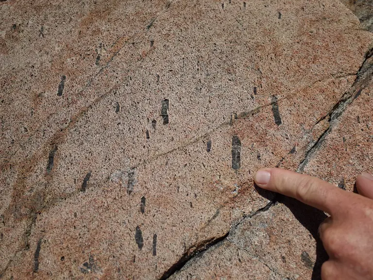 Detalje af peridotit ved Isua. Foto: Kristoffer Szilas