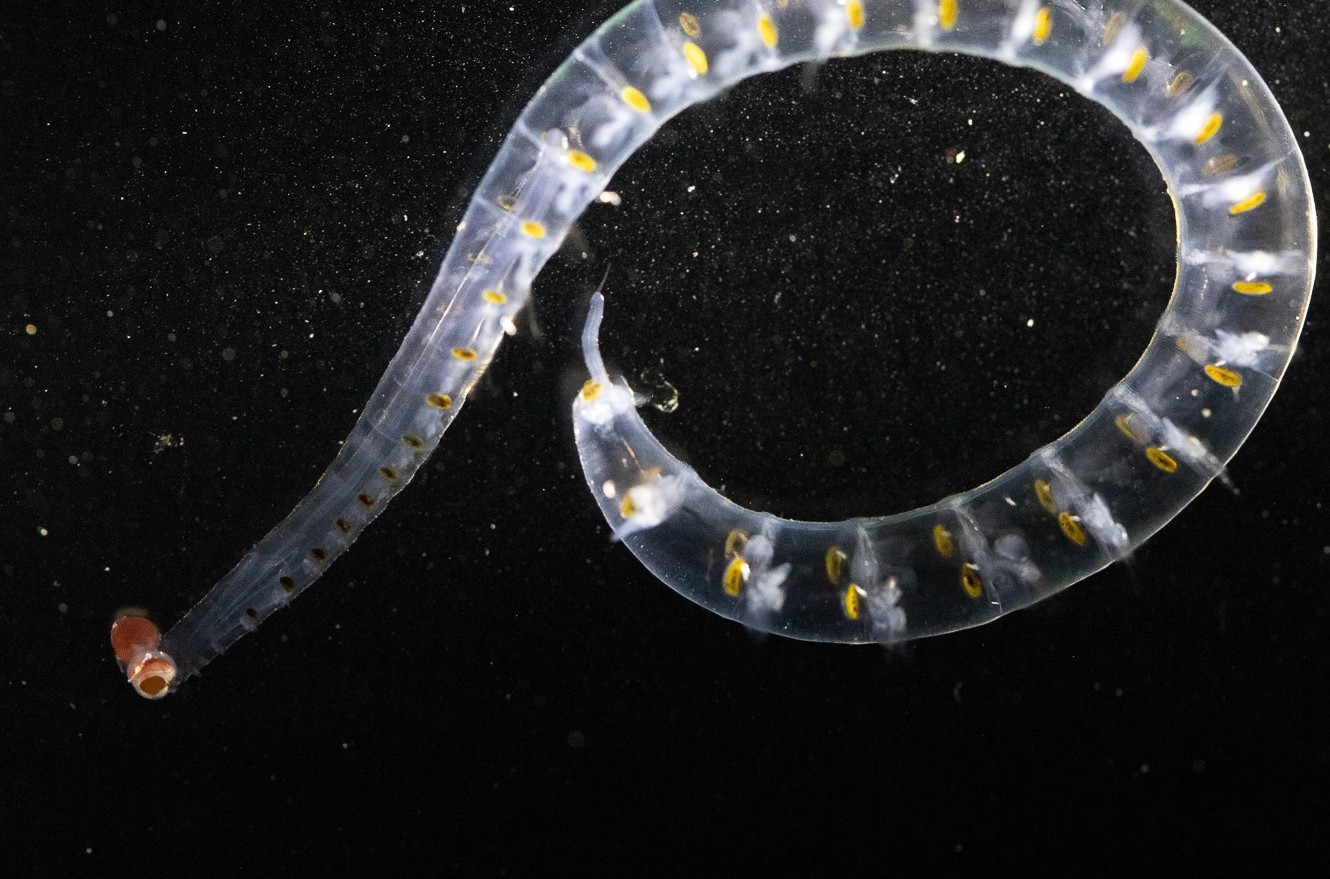 Hundredvis af røde prikker bevæger sig dansende op og ned i Middelhavets nattemørke. Prikkerne optræder i par, for der er tale om øjne. Røde øjne, som i bogstaveligste forstand buler ud som på stilke i forlængelse af hovedet. Øjnene sidder på gennemsigtige børsteorme, der er mellem fire og 30 centimeter lange.