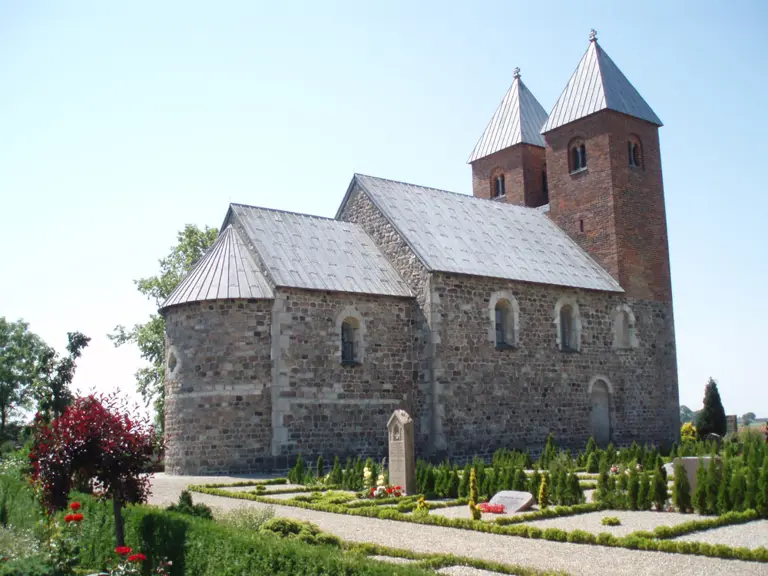 Det var omkring år 965, at kristendommen blev Danmarks officielle religion. Her ses den høje kirke i Fjenneslev mellem Ringsted og Sorø, som er bygget af rå og kløvede kampesten cirka 1125-50. Foto: Else Roesdahl