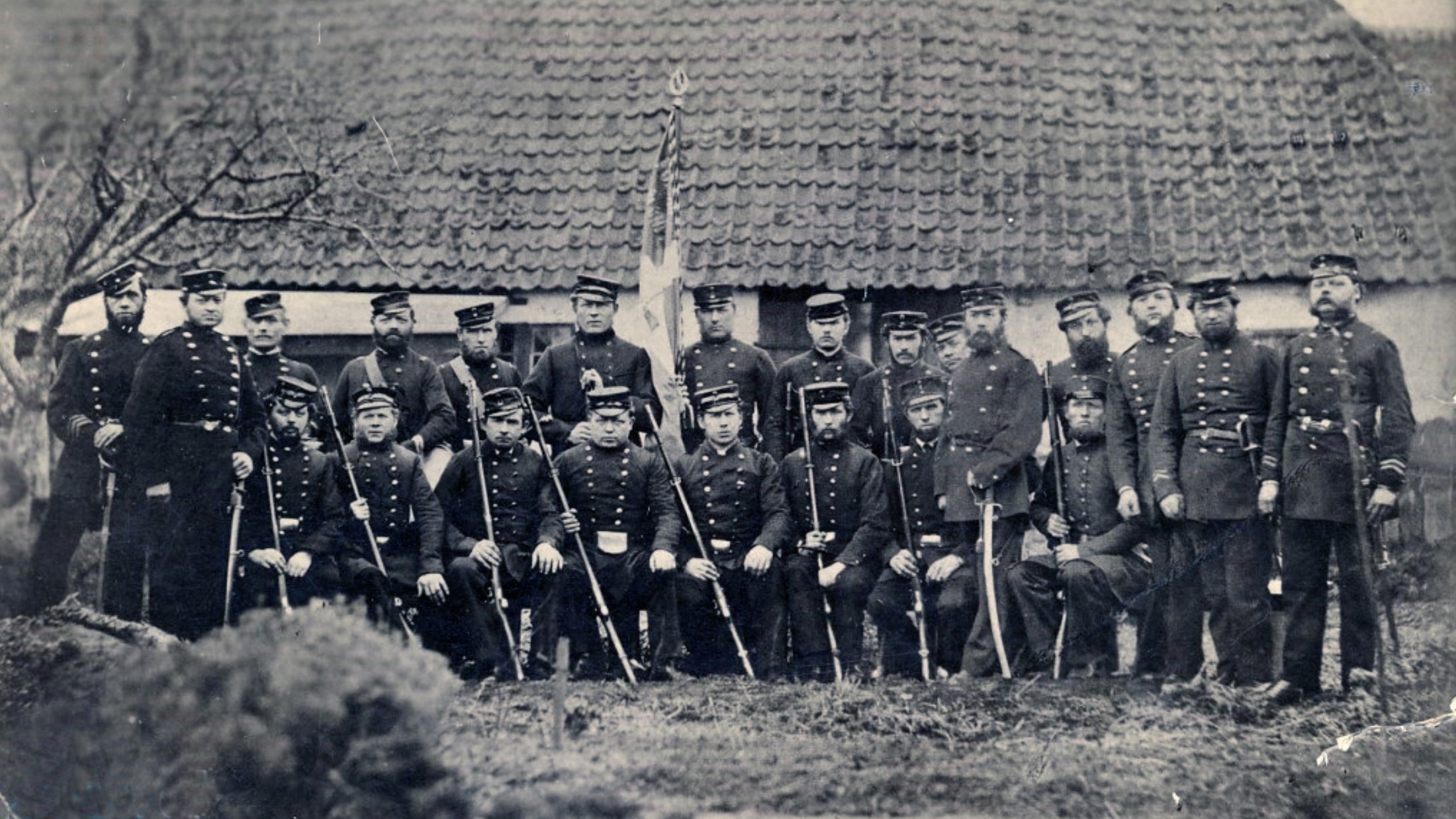 Forestillingen om, at hæderlige borgere burde være bevæbnede for at forsvare fred, lov og orden, levede længe. Her fra Korsør borgervæbning 1870. Lokalhistorisk Arkiv for Korsør og Omegn