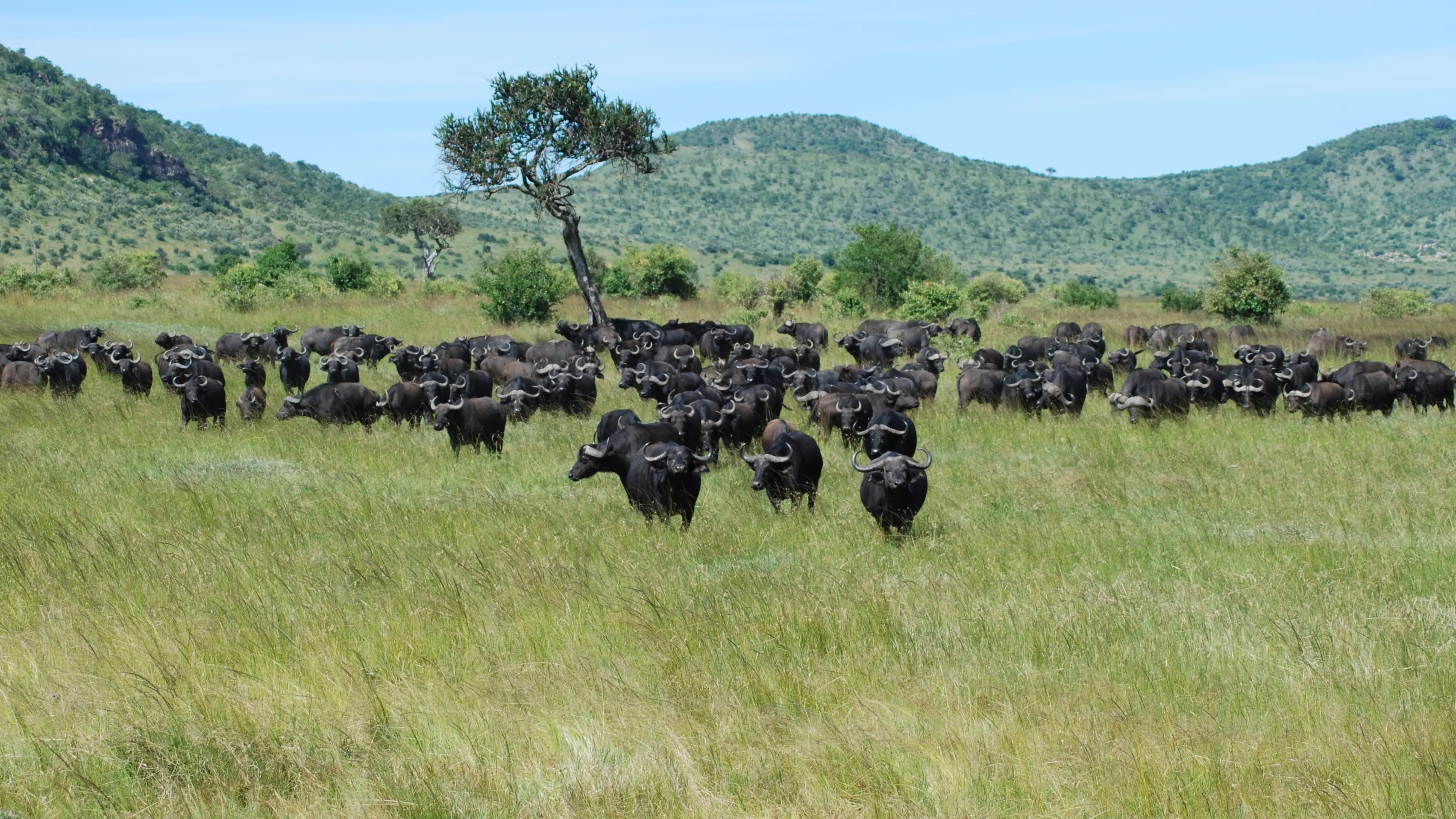 Kafferbøfler er et af de store pattedyr, som indgår i projektet om at opbygge The African Biobank. Foto: Rasmus Heller