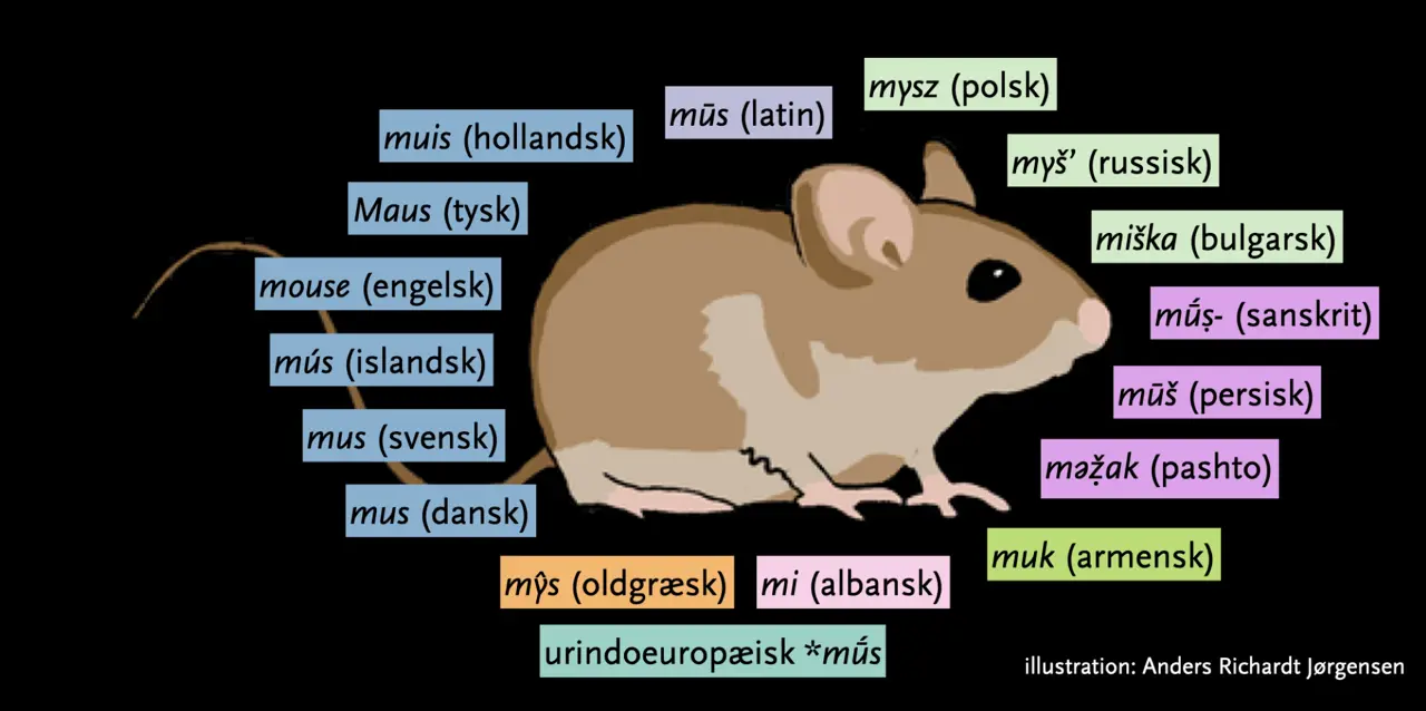 Når Thomas Olander holder foredrag om det danske sprogs tidsrejse, inkluderer han gerne et billede af en mus. Valget af det dyr er ikke grebet ud af den blå luft. For det lille, enkle ord mus afslører tusindårige forbindelser mellem det danske sprog og sprog som persisk, oldgræsk og indisk sanskrit.